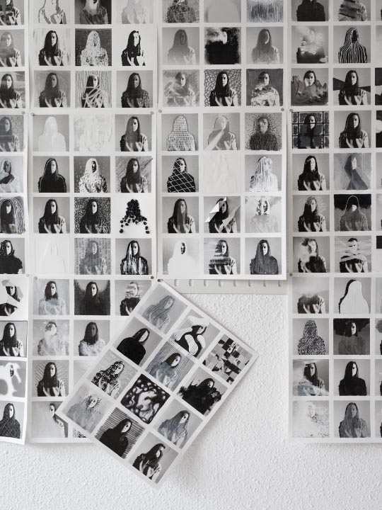In this work, a single self-portrait is multiplied into a grid of